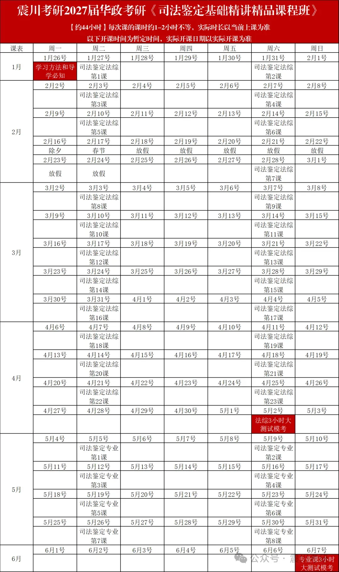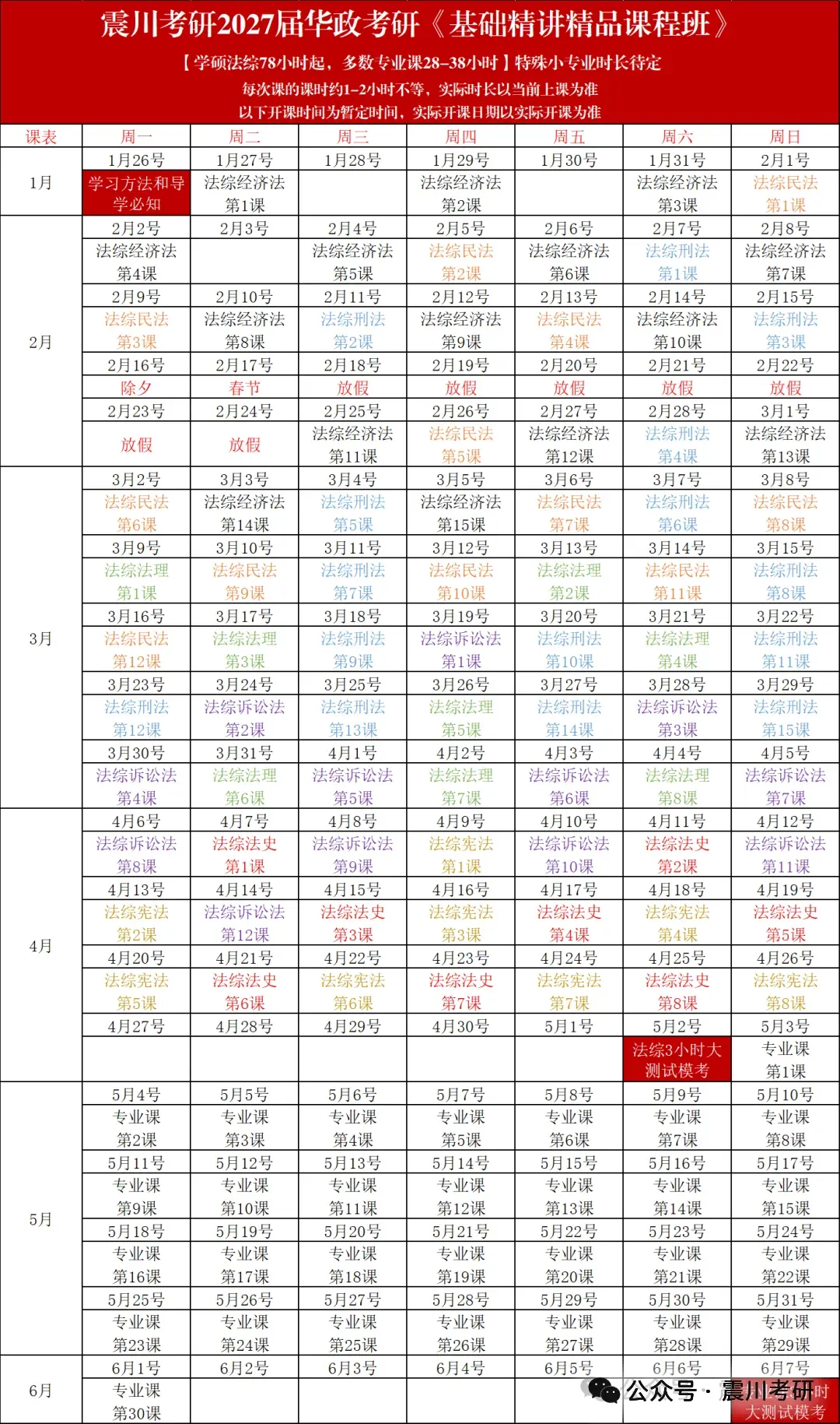 学硕法综78小时起,多数专业课28-38小时,特殊小专业时长待定