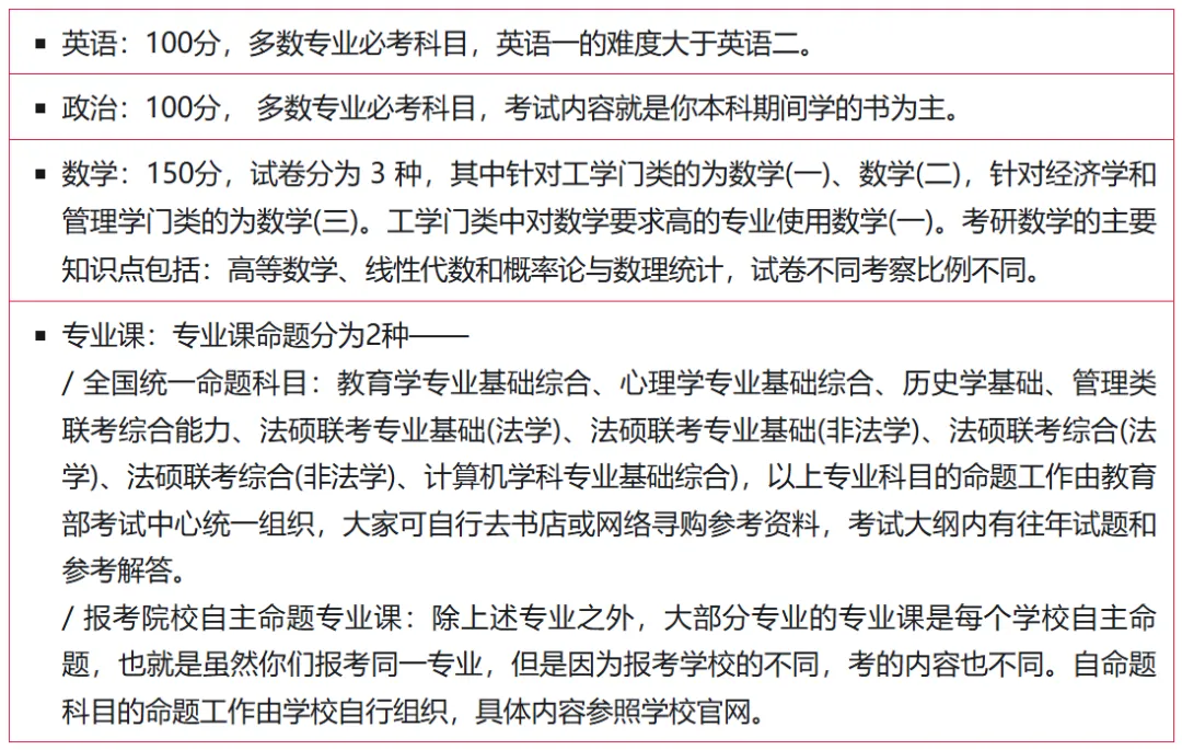 考研科目当中,主要是考公共课和专业课。公共课都是国家统一命题,分别有:外语、政治、数学。