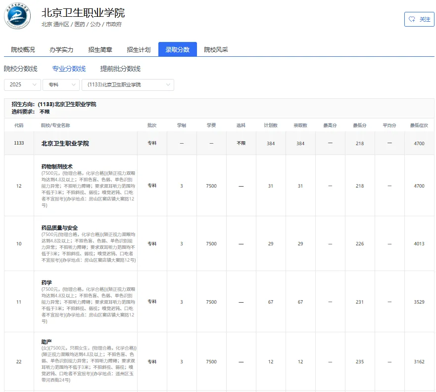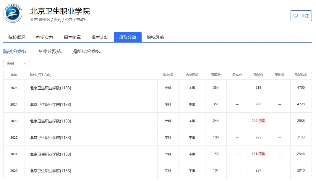 北京卫生职业学院21"护理(创新实验班)(女)"268
