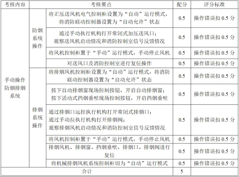 2.正确操作机械排烟系统:(1)正确切换火灾报警控制器(联动型)至自动允许控制状态;(2)正确切换排烟风机控制柜至自动控制状态;(3)正确手动开启常闭式排烟口(阀)并查看排烟风机启动情况;(4)正确操作现场控制按钮开启自动排烟窗和活动式挡烟垂壁;(5)正确操作排烟风机控制柜手动停止排烟风机;(6)正确复位排烟窗、挡烟垂壁和排烟口(阀)。