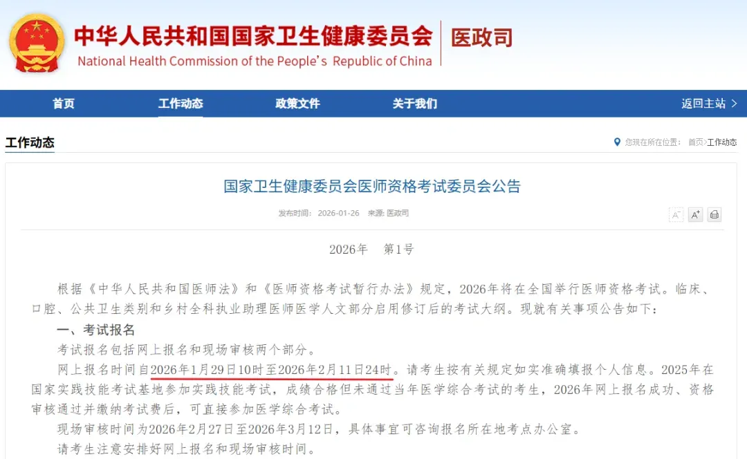 2026 医师报名有 2 种方式: 1. 微信小程序的快捷报名功能; 2. 官网考生服务系统进行报名。详细步骤同步如下: