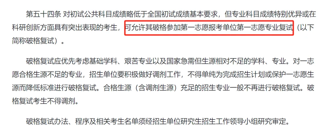 3、只有第一志愿的考生才能申请,破格复试后,考生不得再参加调剂;