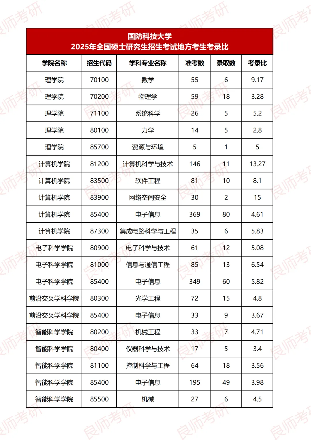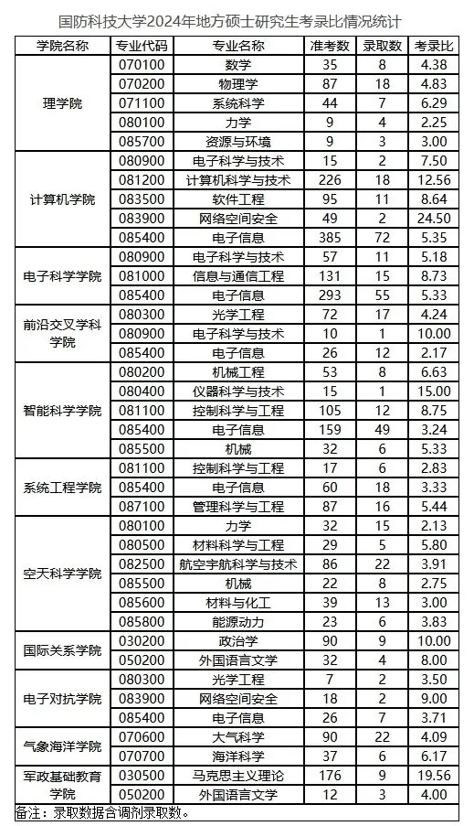 国防科技大学25考研考录比(地方考生)
