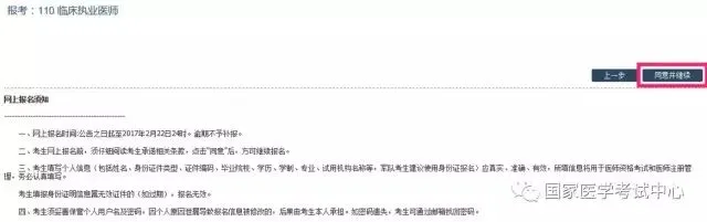 此时页面跳转到考试报名界面,点击打印按钮,打印《医师资格考试网上报名成功通知单》。