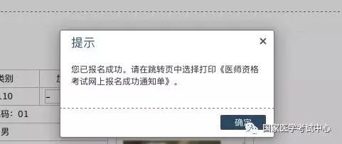 点击提交按钮,弹出对话框,提示报名成功,并且需要打印《报名成功通知单》,点击确定。