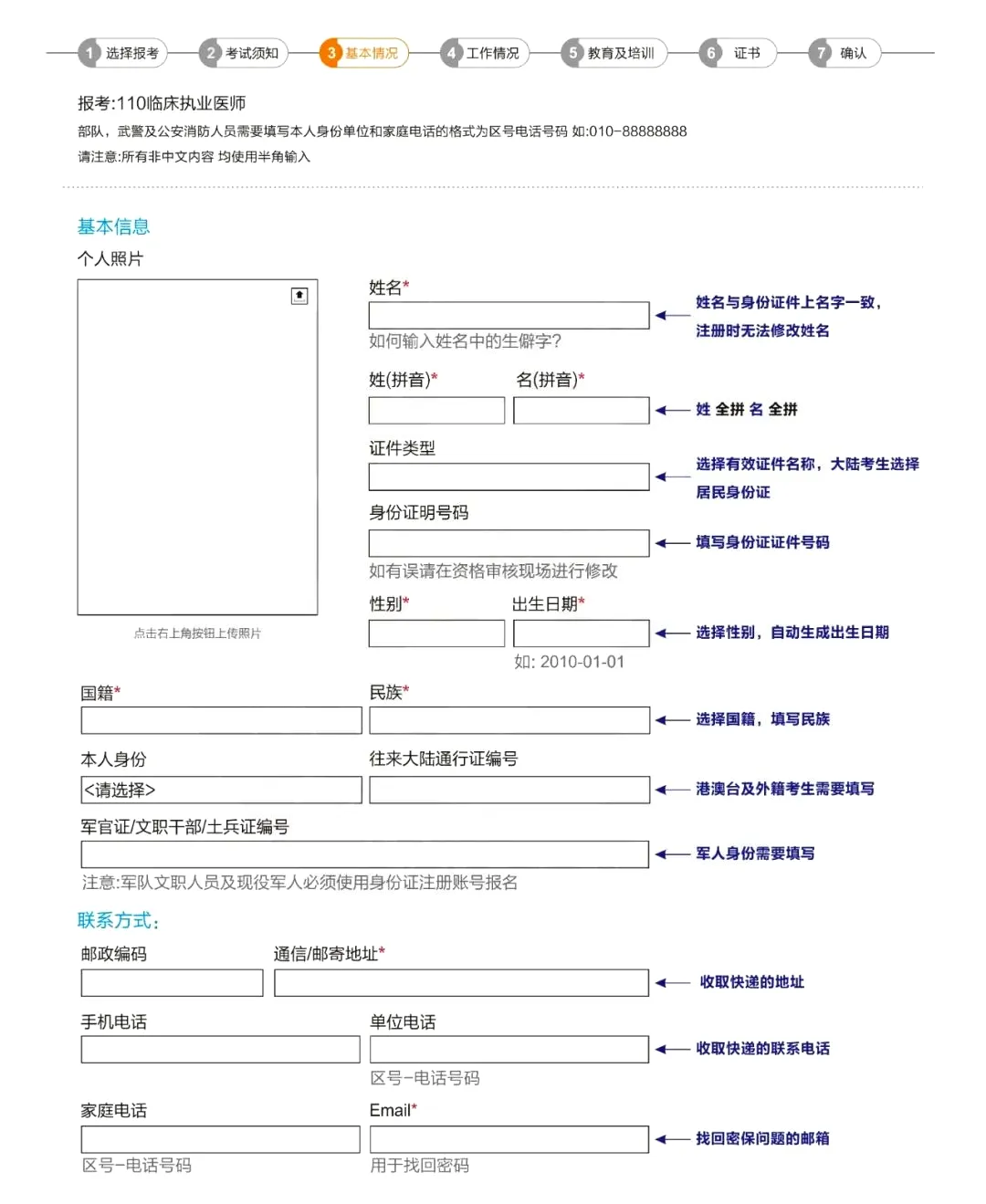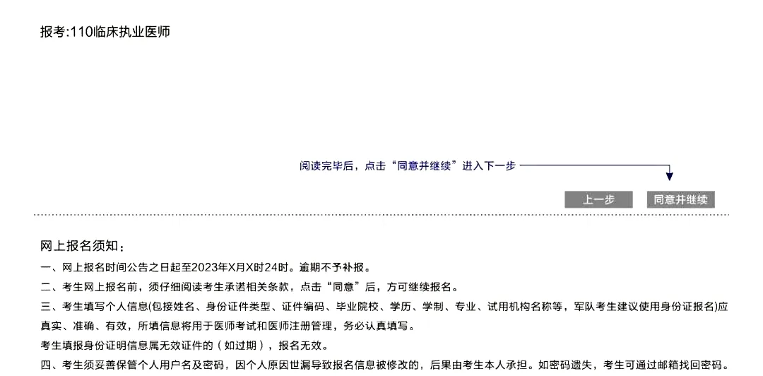 1.只填写并选择一个符合《医师报名规定》的学历;