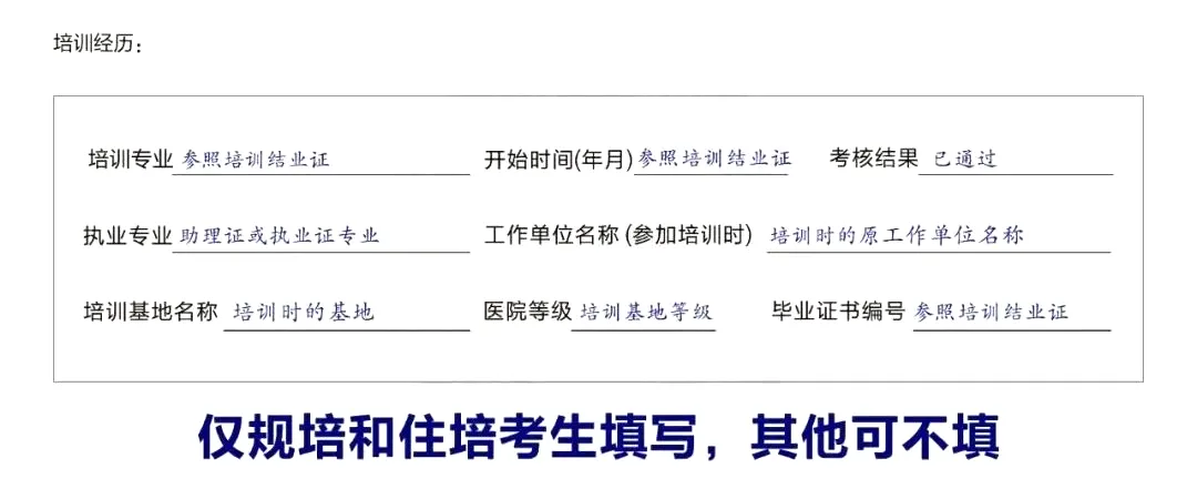 情况2:仅限本人参加全科医师培训、规范化医师培训的经历;