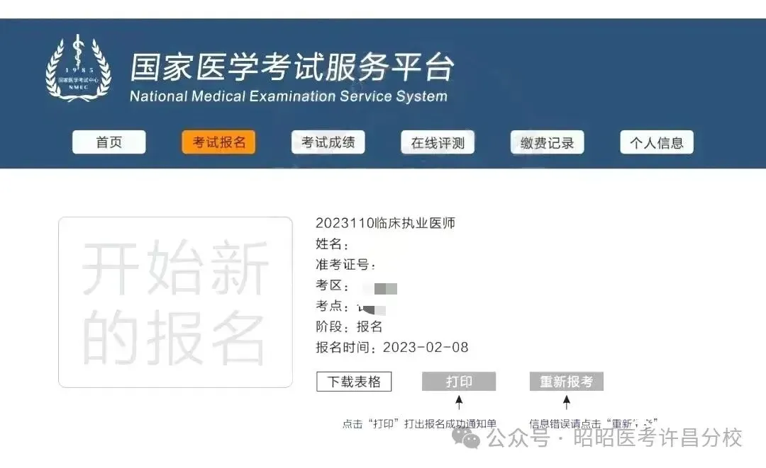 3.报名结束后打印正确的《成功通知单》,完成重新网报。