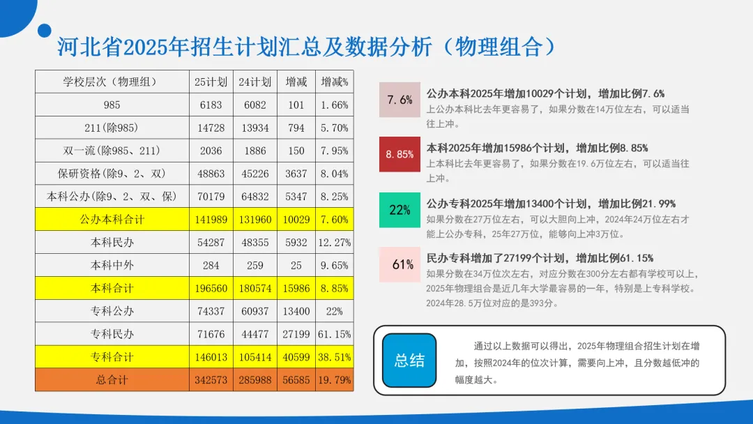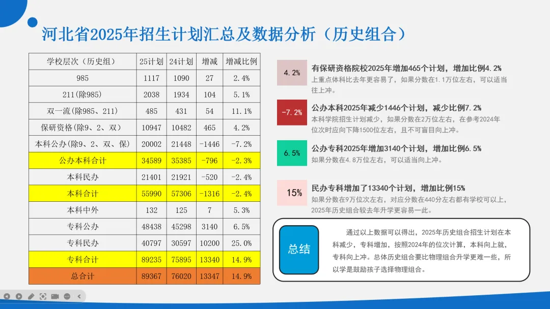 以河北省2025年高考招生计划的变化为列,物理和历史组合分别说明。