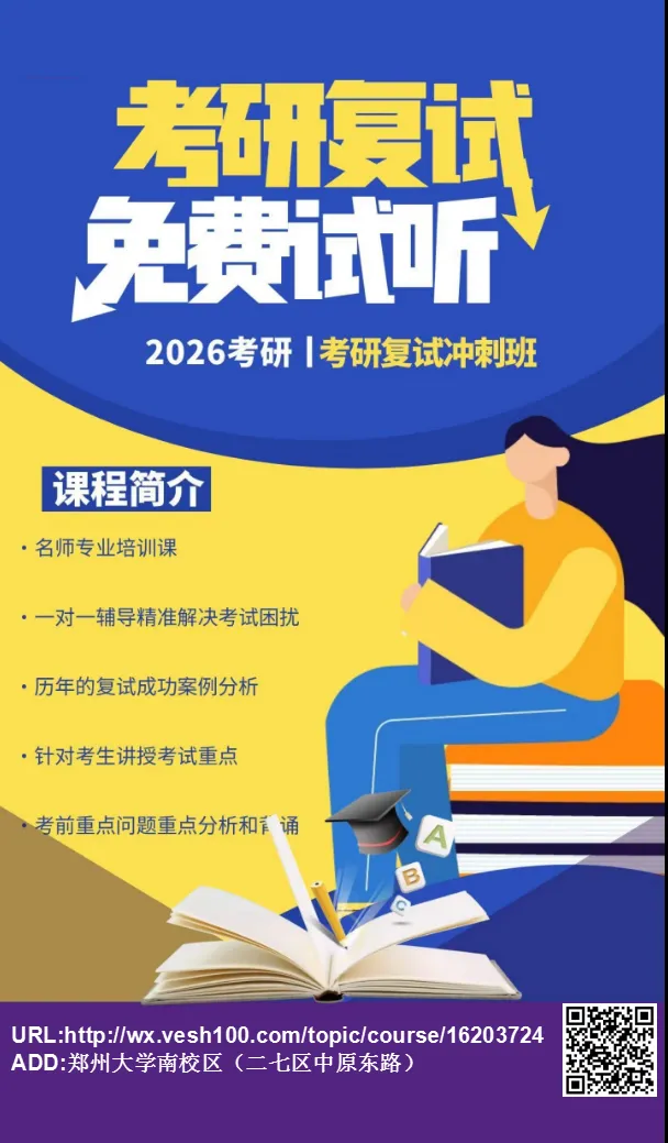 不用再自己熬夜查信息、不用再焦虑无人指导、不用再担心复试发挥失常!现在联系我们,即可免费领取「2026考研复试调剂备考大礼包」(含历年真题、面试题库、时间规划表),同时预约复试班免费试听名额,抢占复试备考先机!