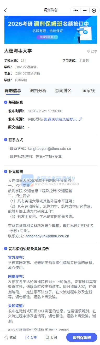 及时同步26考研调剂缺额信息,不遗漏关键机会;