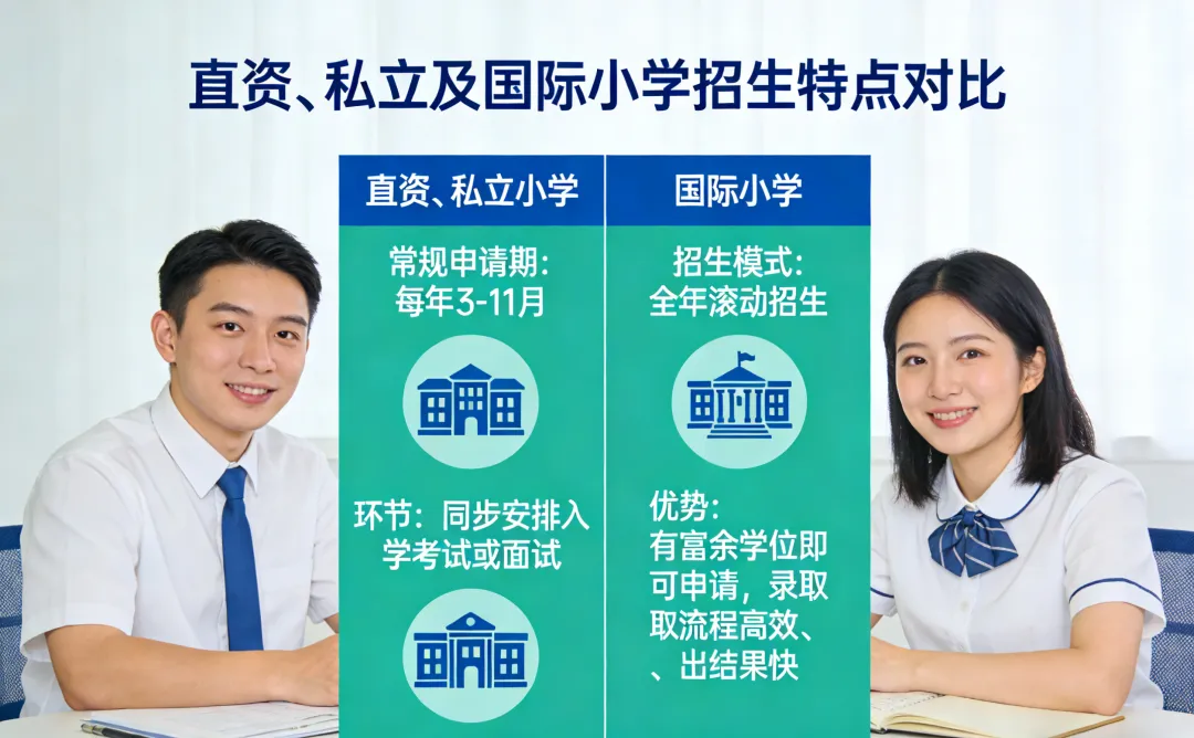 🔹直资、私立小学:每年3-11月为常规申请期,部分学校会同步安排入学考试或面试环节。