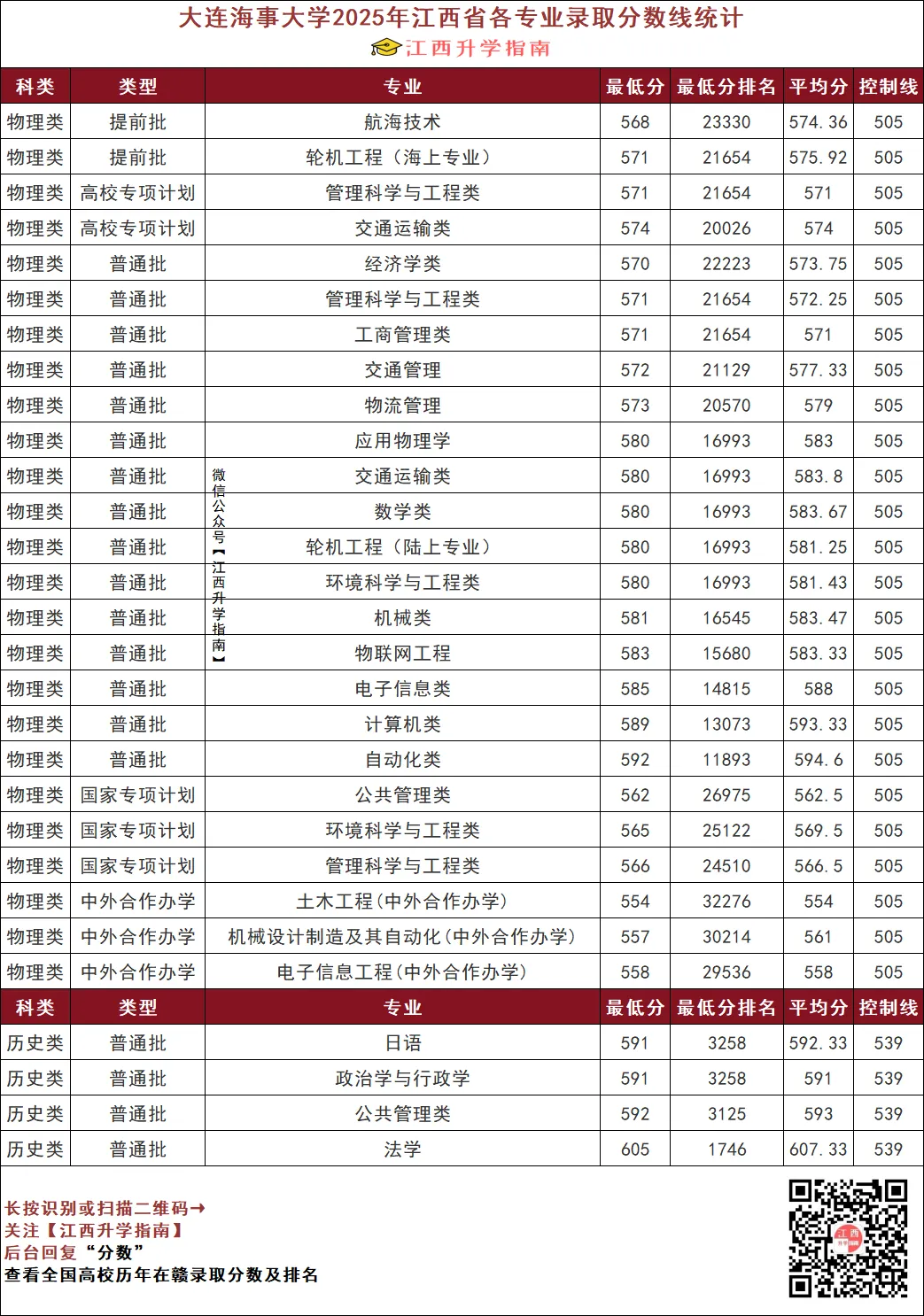 >大连海事大学2025年江西省各专业录取分数线统计!