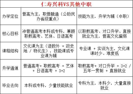 仁寿新科高中 ≠ 纯职业学校,比普通职校更偏向高考升学、文化打底、在校硬件更优,更像高中、更稳更有本科希望。