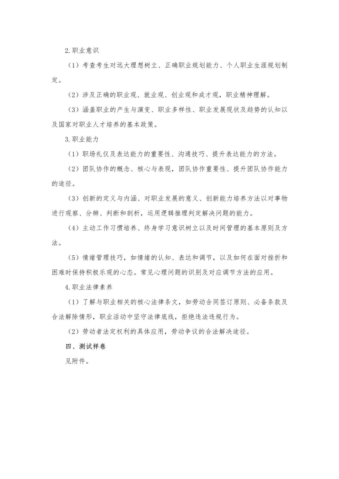 《职业技能测试》考试大纲及样卷