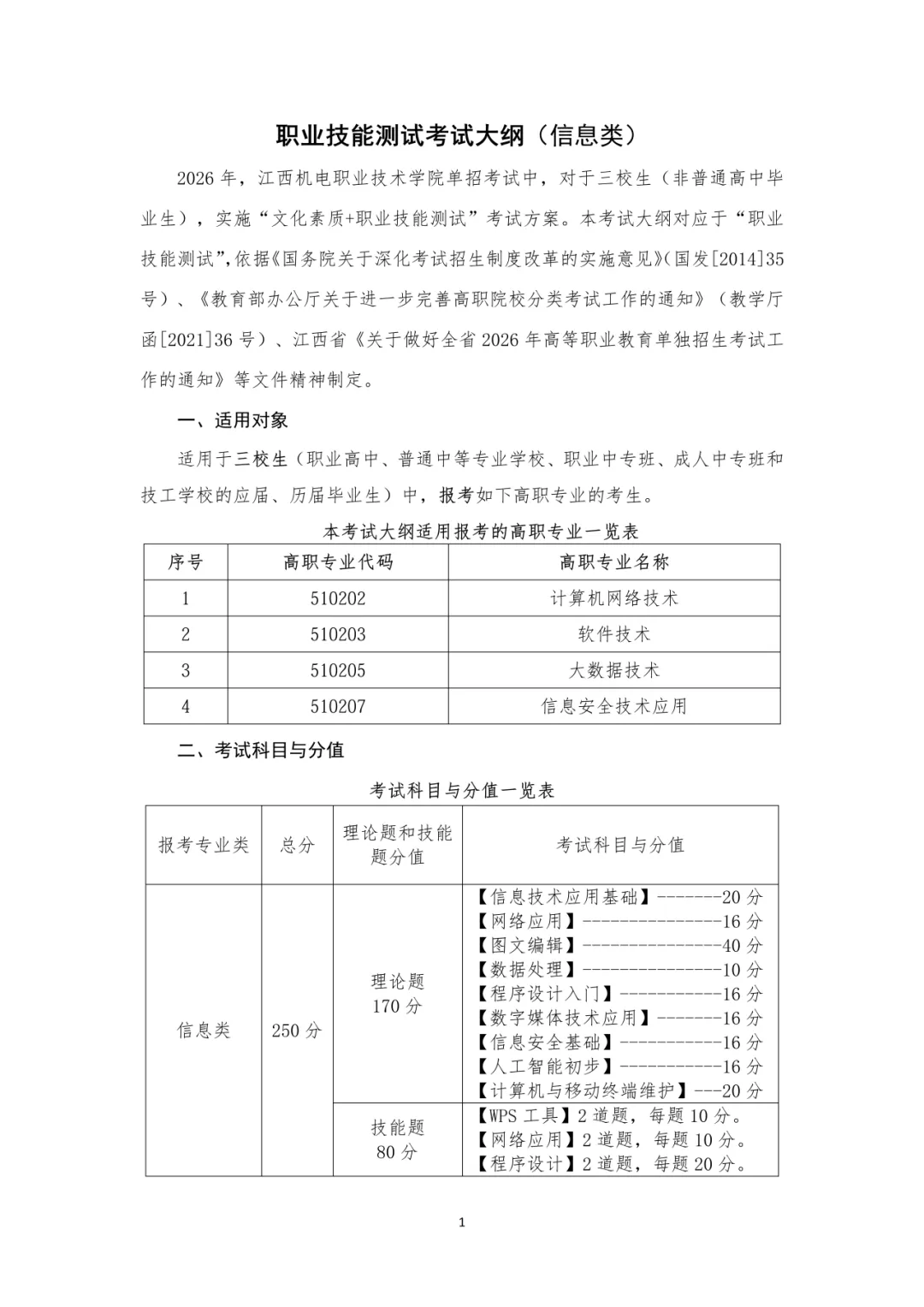 附:江西机电职业技术学院2026年单独招生职业技能测试大纲及样卷(信息类).pdf点击文件名下载