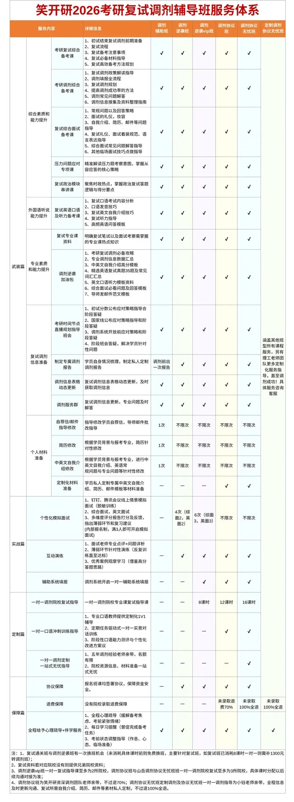 笑开研2026考研复试调剂辅导班提供多种选择,满足不同需求: