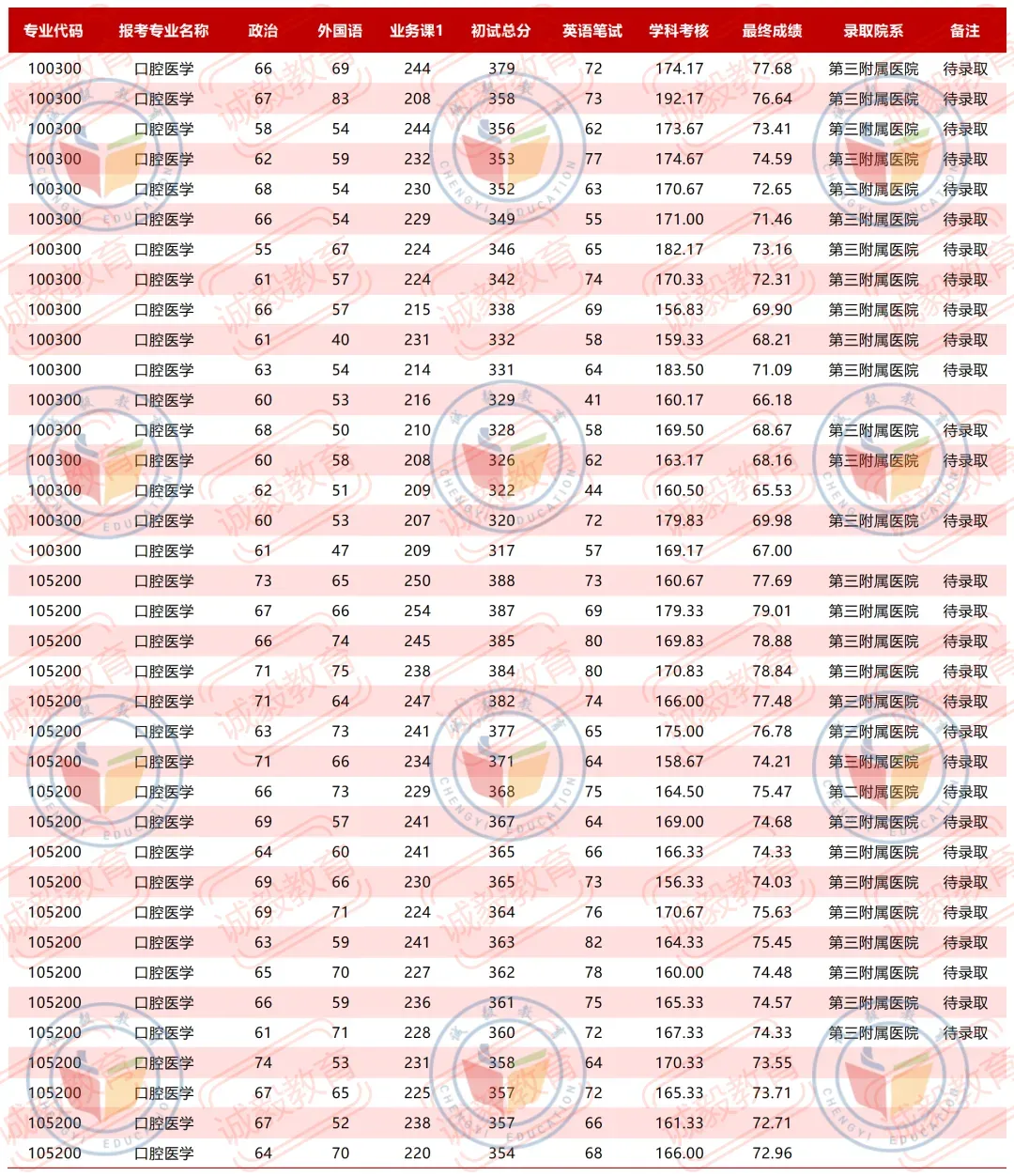 >【口腔考研】25西安交通大学复试数据内容汇总