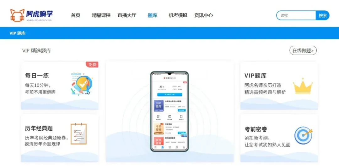 下载阿虎响学APP,免费领取题库/试听课