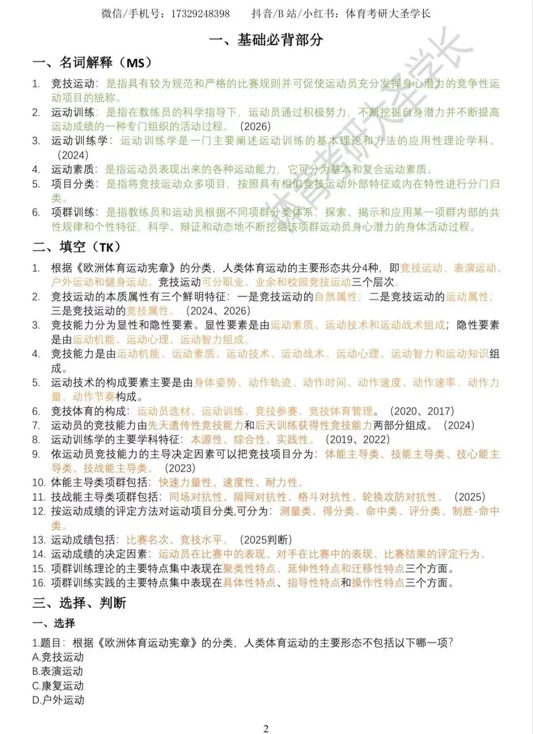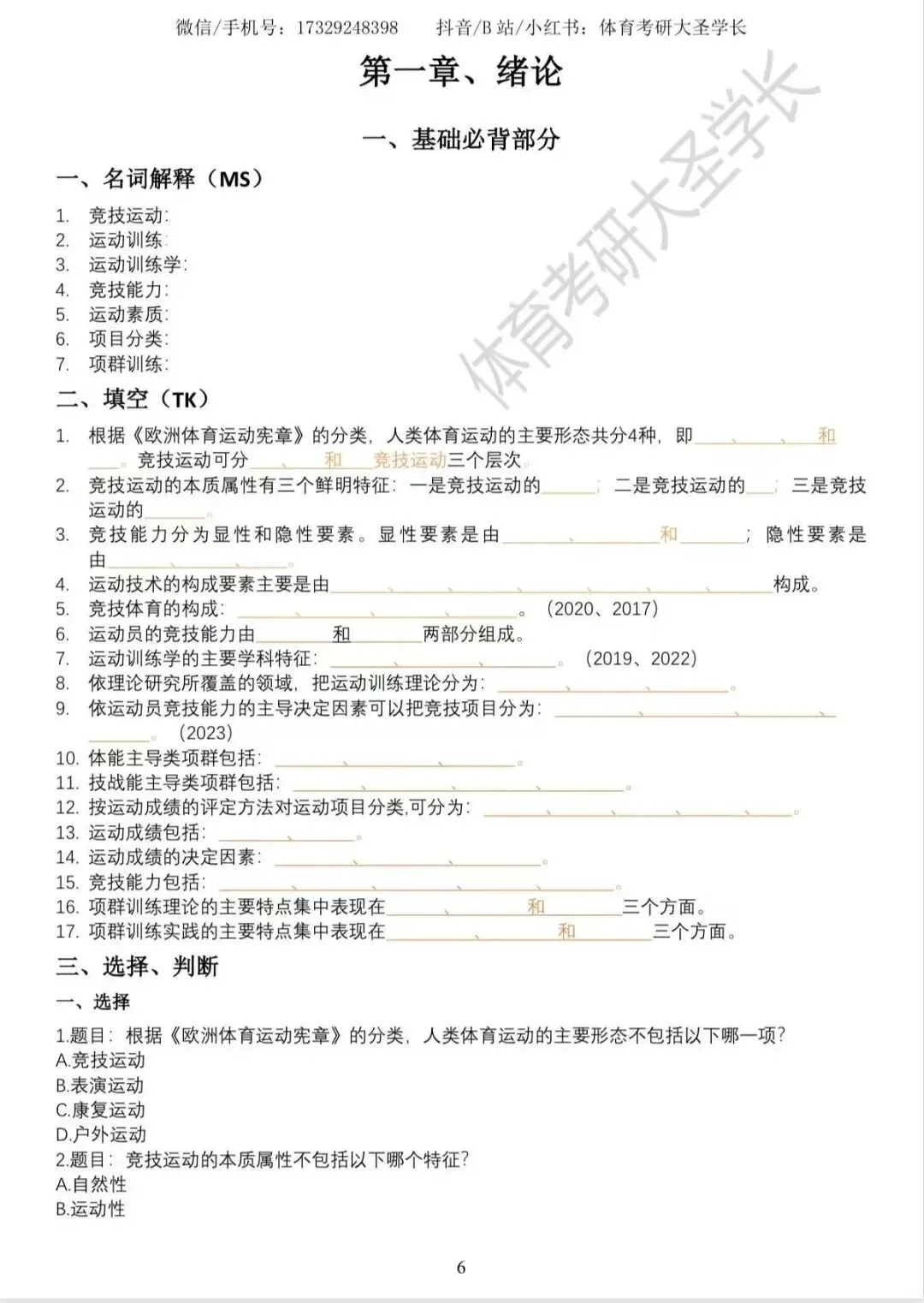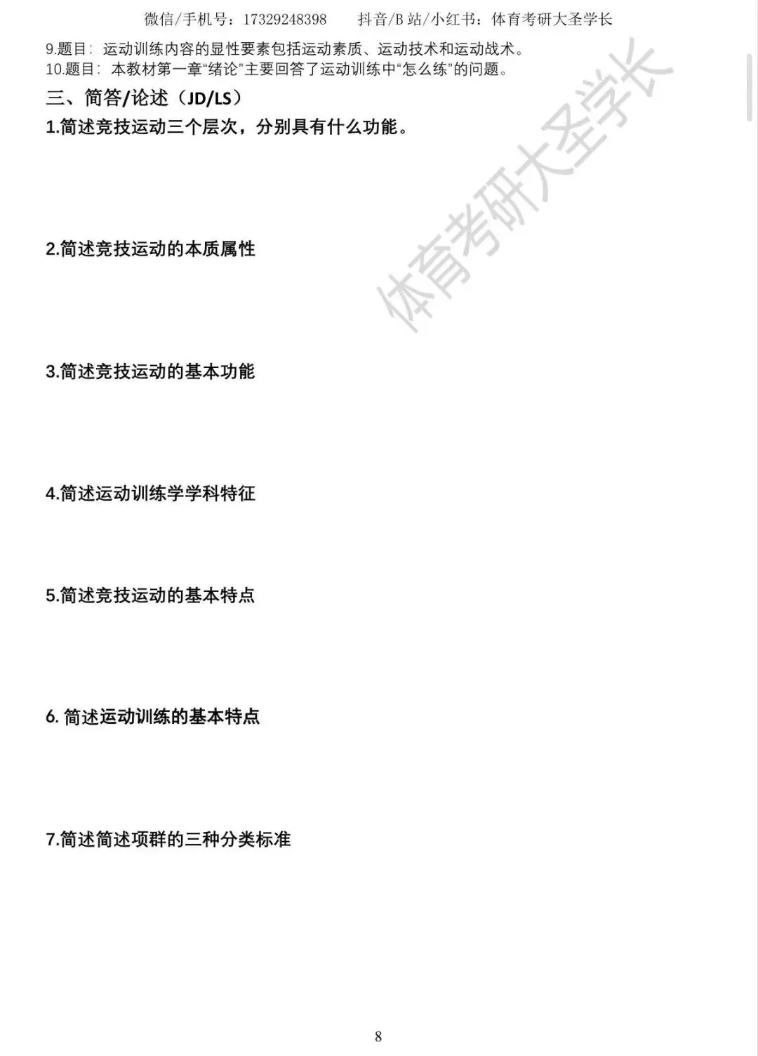武体考试内容每年都有往年真题再现,所以真题是必须掌握的,真题将专硕与学硕的题目都给到大家,都必须掌握。