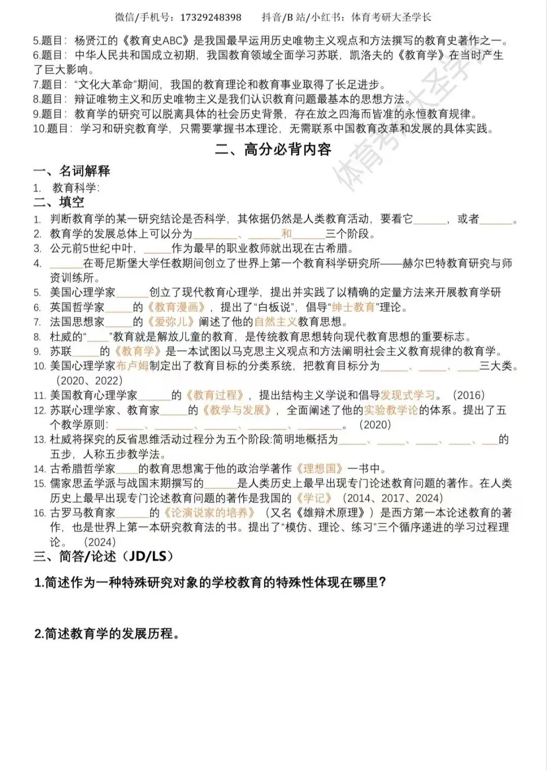 严格按照名词解释、填空、简答、论述的题型进行设置,针对性强,符合应试考试。训练学和教育学原理根据考纲变化增设选择题和判断题目(括号内的年份为作为真题出现的年份)