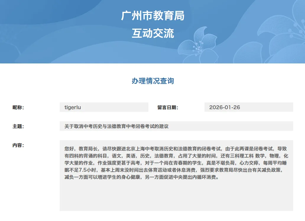 市民朋友您好!您提出的“关于取消中考历史与法德教育中考闭卷考试的建议”,我们高度重视,并结合当前上级部门中考政策和我市实际进行了认真研究。
