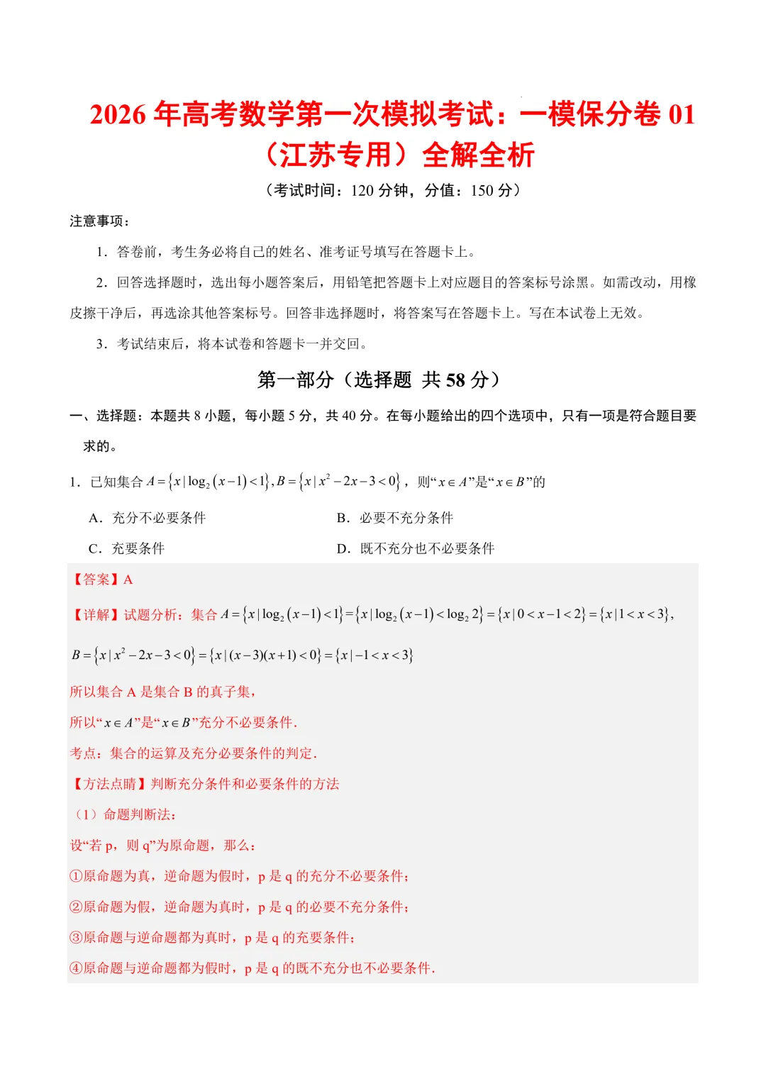 >2026年高考数学第一次模拟考试:一模保分卷01~03(江苏专用)