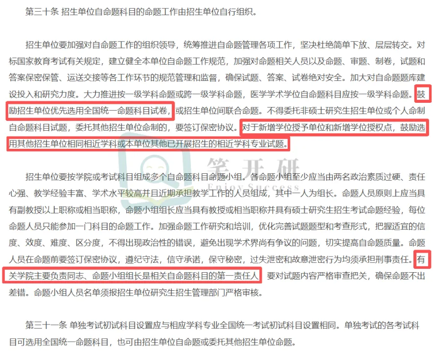 今年对院校自命题的要求更严了,还有一些新规定需要大家关注一下!26年新增表述有:“对于新增学位授予单位和新增学位授权点,鼓励选用其他招生单位相同相近学科或本单位其他已开展招生的相近学科专业试题”“有关学院主要负责同志、命题小组组长是相关自命题科目的第一责任人”。