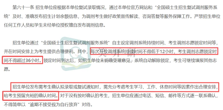 关于调剂也增加了更有人文关怀的一点了:再也不会出现深夜发调剂通知,两小时内必须确认的情况啦!招生单位要充分考虑考生的学习、工作、休息时间,预留足够的确认时间,要是考生没按时确认,还会通过电话、短信、邮件等方式逐一联系确认呢!