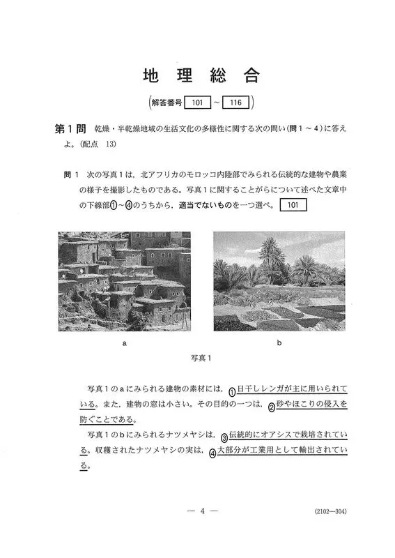 第一大题:干燥、半干燥地区生活文化的多样性(13分)