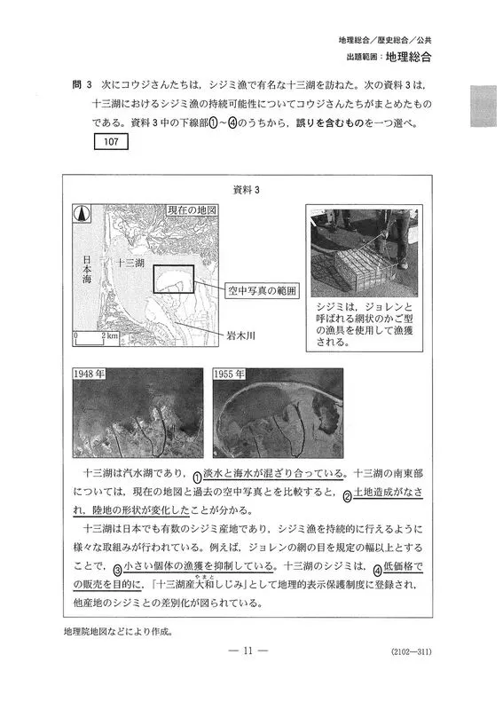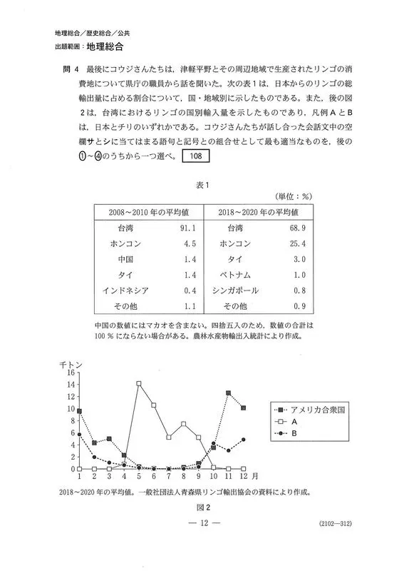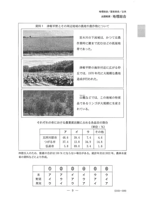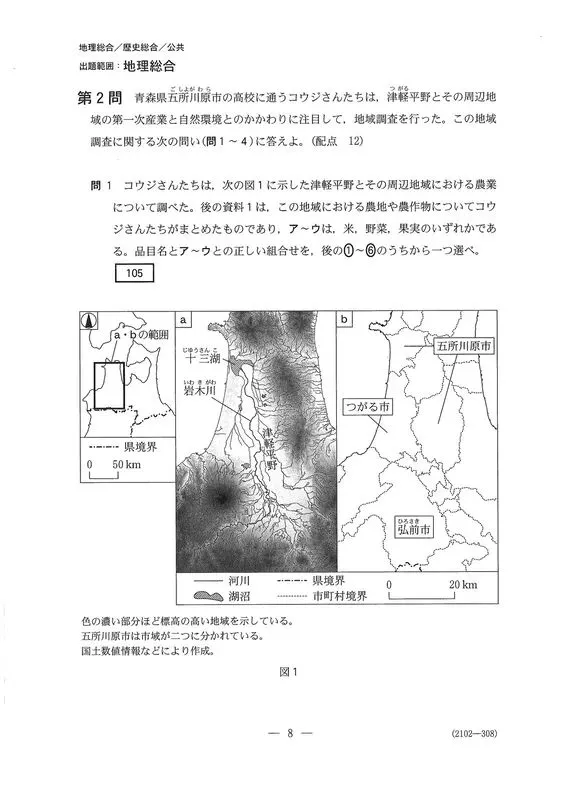 第二大题:津轻平原及其周边地区的地域调查(12分)