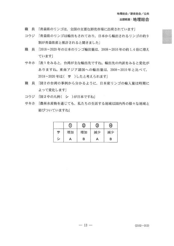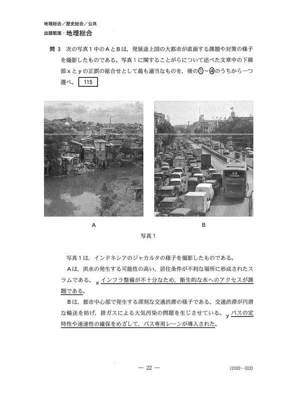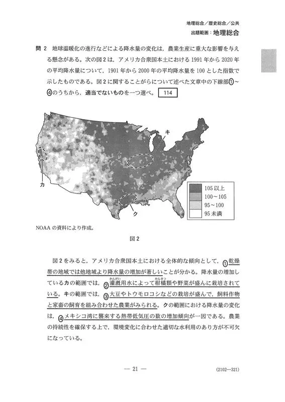 这是一个考验现代社会的全球性课题,以及从资料中捕捉与此相关的国际性对策的能力的大问题。所考的内容很基本,很多问题只要结合已学事项进行考察就能正确回答。