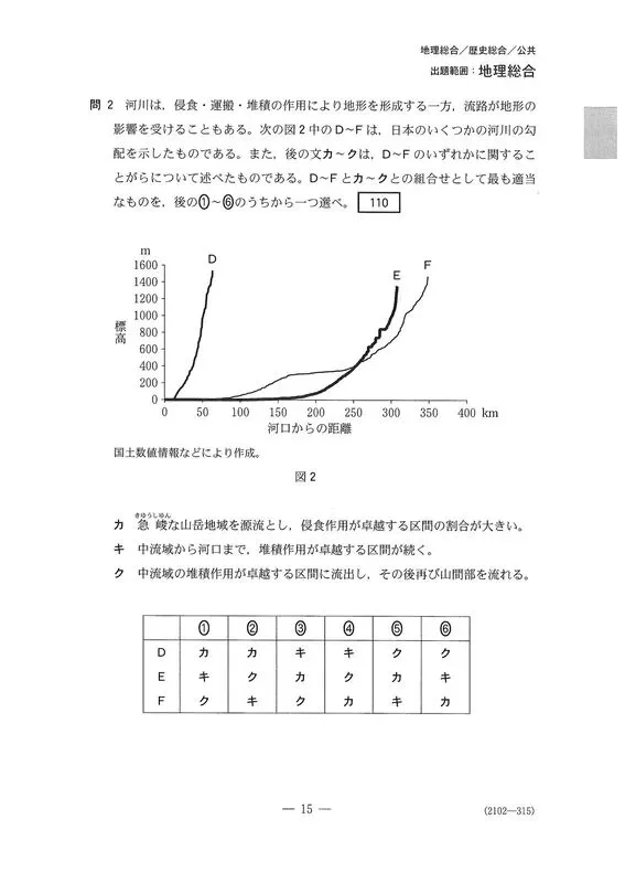 问题2是根据给出的地图,讨论蓄水池决堤时浸水的问题。可能也有考生为如何判断空栏而烦恼,但重点是整理和思考从地图上可以判断的信息。