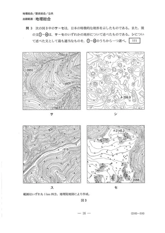 共4道大题,解答数16个,与去年相比没有变化。第一大题和第二大题与“地理综合·地理探究”科目相同。