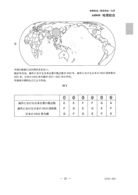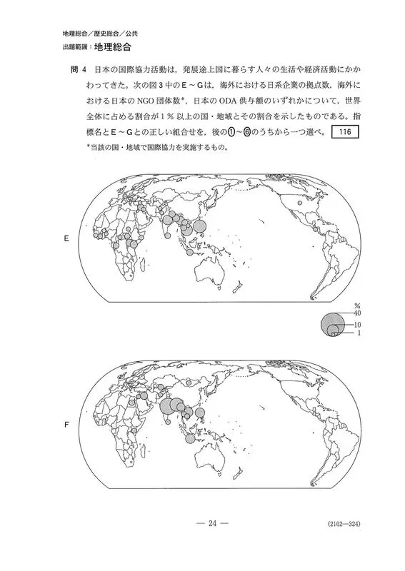 问题4以日资企业在海外的据点数和日本的ODA提供额分布的地图为基础,从各地区的分布来判断日本国际合作的特征,要求从多方面把握国际联系的能力。