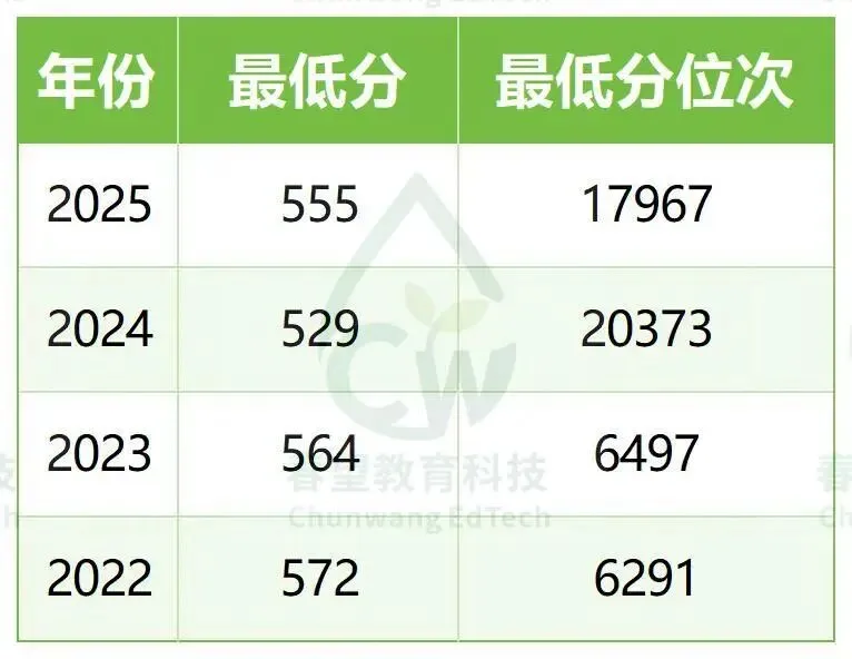 在物理类方面,普通类录取分数线整体呈现上升趋势,从2022年的564分上升到2024年的584分,位次也从21403名上升到21383名,变化不大。2025年普通类最低分降至572分,位次降至44146名,可能是由于当年招生计划增加或者报考人数减少等原因。中外合作类录取分数线也呈现上升趋势,从2022年的548分上升到2024年的574分,位次从31972名上升到24964名。2025年中外合作类最低分与普通类相同,均为572分,位次也相同。总体来看,学校在物理类的录取分数线和位次相对较为稳定,但也存在一定的波动。六、报考建议