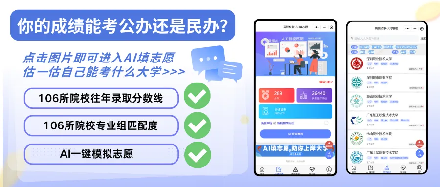 2023年专科线100分(补录85分),本科线260分,达到这些分数线才能填报相对应批次的大学,但注意了,这仅仅是证明你有资格填志愿,并不代表100分就能读全部院校,较为热门的公办专科院校(深职、番职等)最低录取分都要300分以上;另外,填志愿前不仅要参考往年分数,更重要的是要看投档排位!