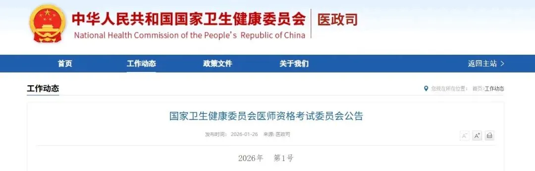 根据《中华人民共和国医师法》和《医师资格考试暂行办法》规定,2026年将在全国举行医师资格考试。临床、口腔、公共卫生类别和乡村全科执业助理医师医学人文部分启用修订后的考试大纲。现就有关事项公告如下: