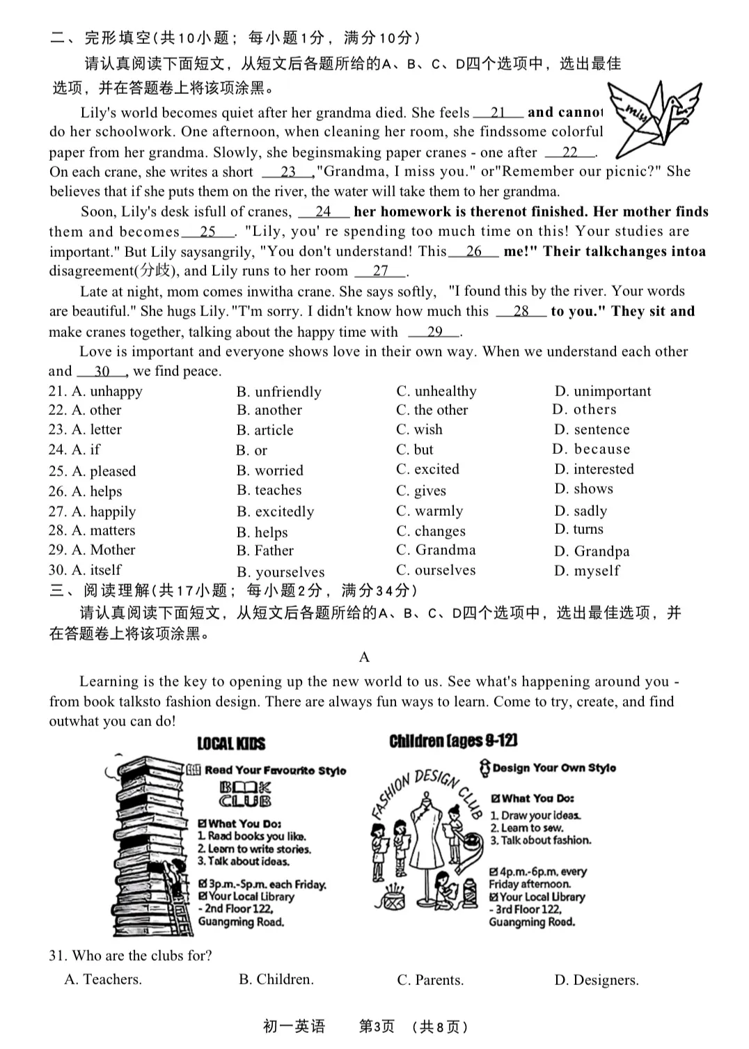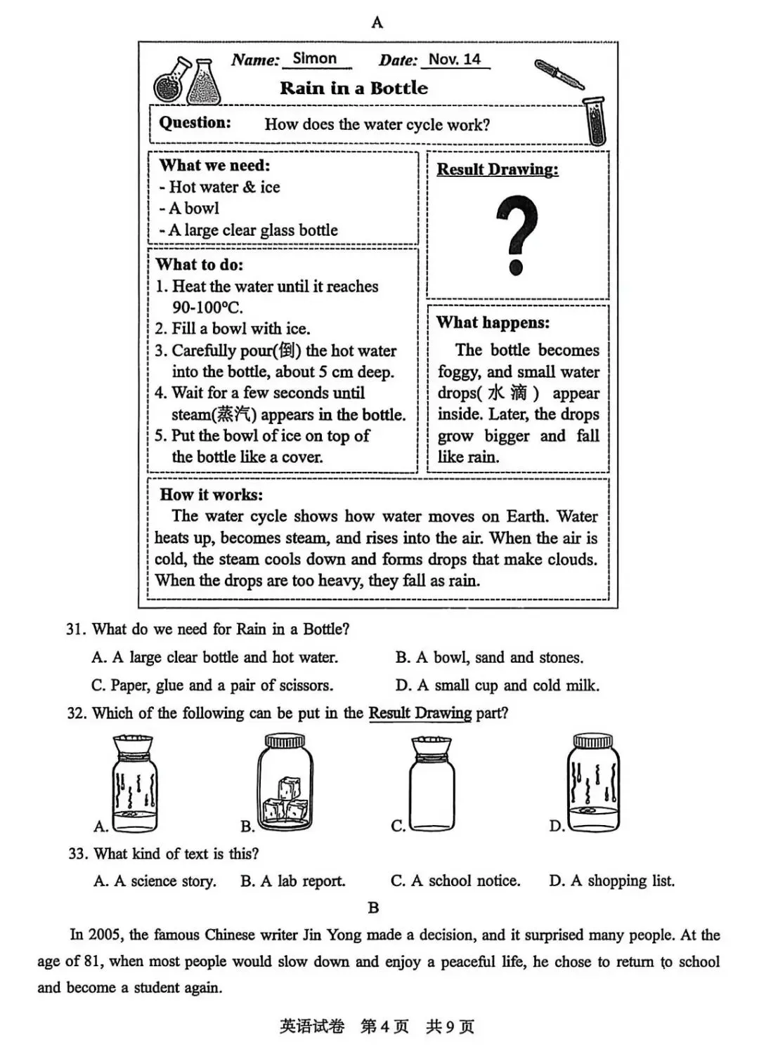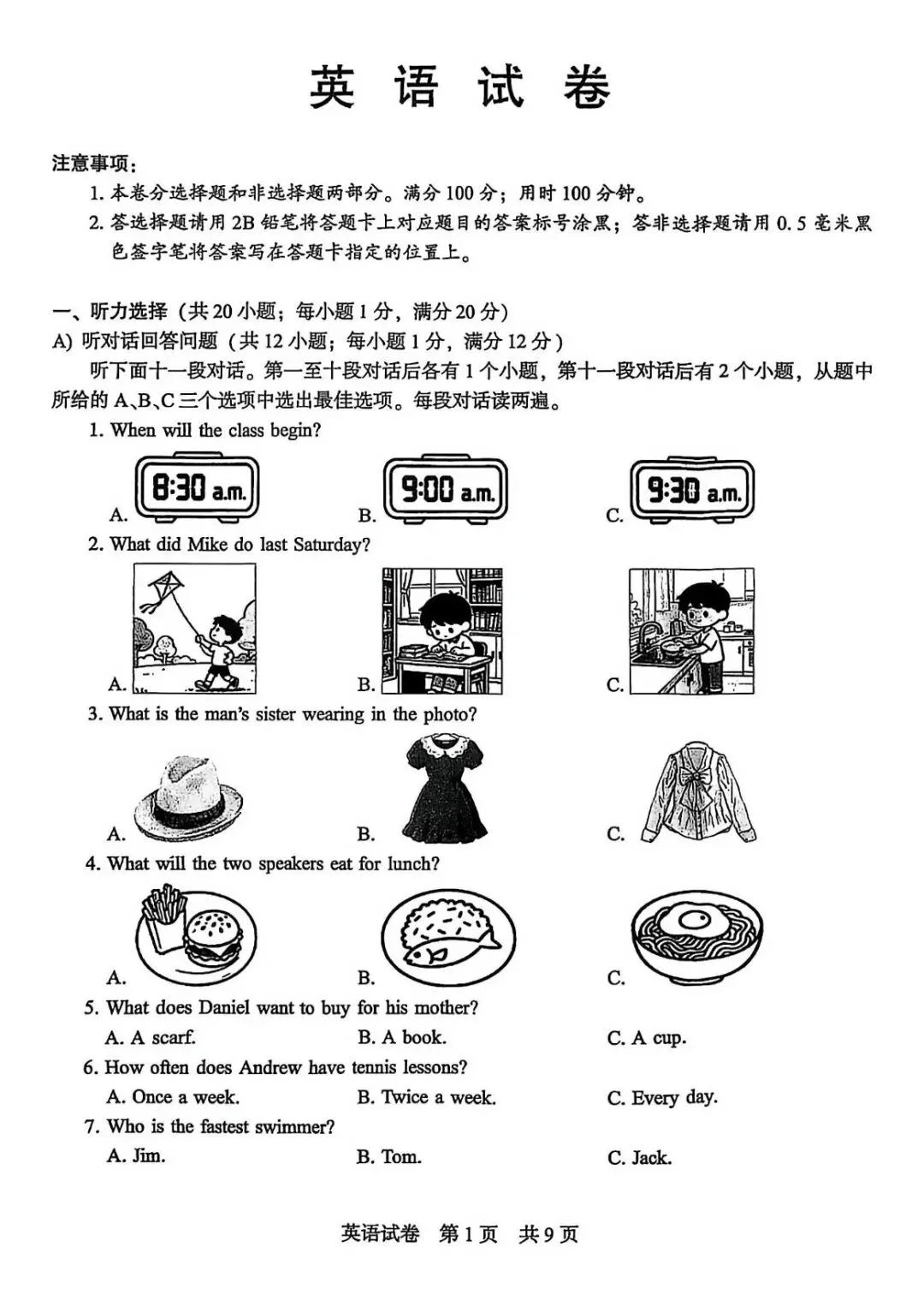 前两日科目看这里👉张家港期末考第二日结束!初一数学、英语、初二语文、物理、高一数学试卷来了!