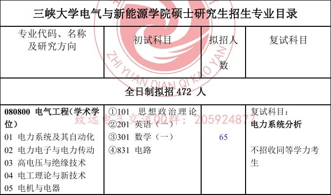 三峡大学电气与新能源学院各专业均采用现场复试方式,三大不歧视本科,复试公平