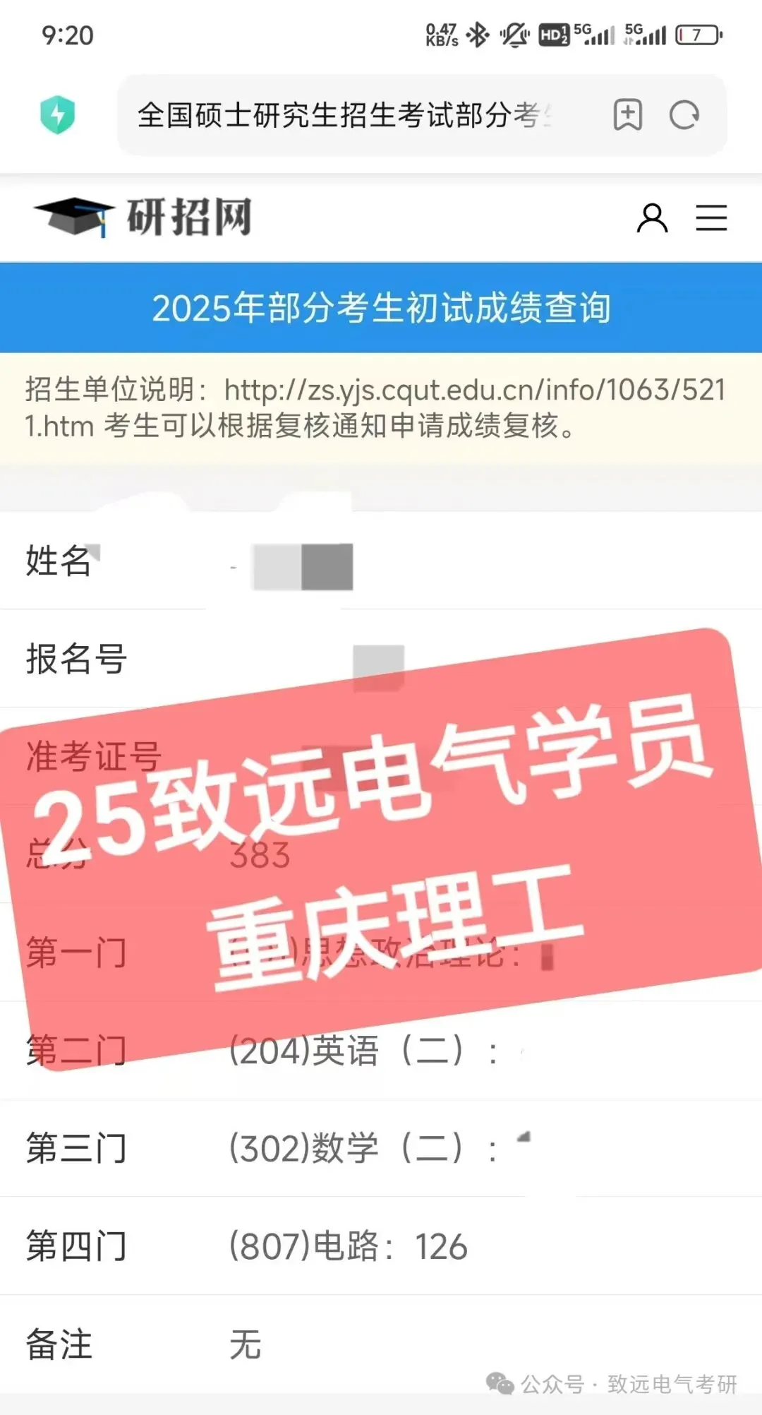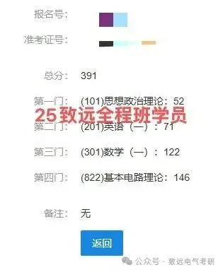 现向大家展示致远25电气考研辅导下各个院校的部分高分代表: