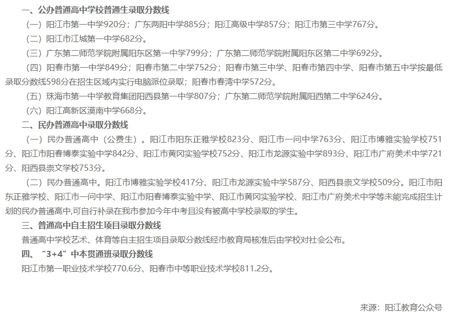 2025年阳江中考总分1000分,录取分数线直接决定2026年的目标定位的分差预判,核心数据来自阳江市阳东区人民政府、市招考办官方公示,涵盖公办、民办、五区所有重点高中,分类型整理,方便快速对照: