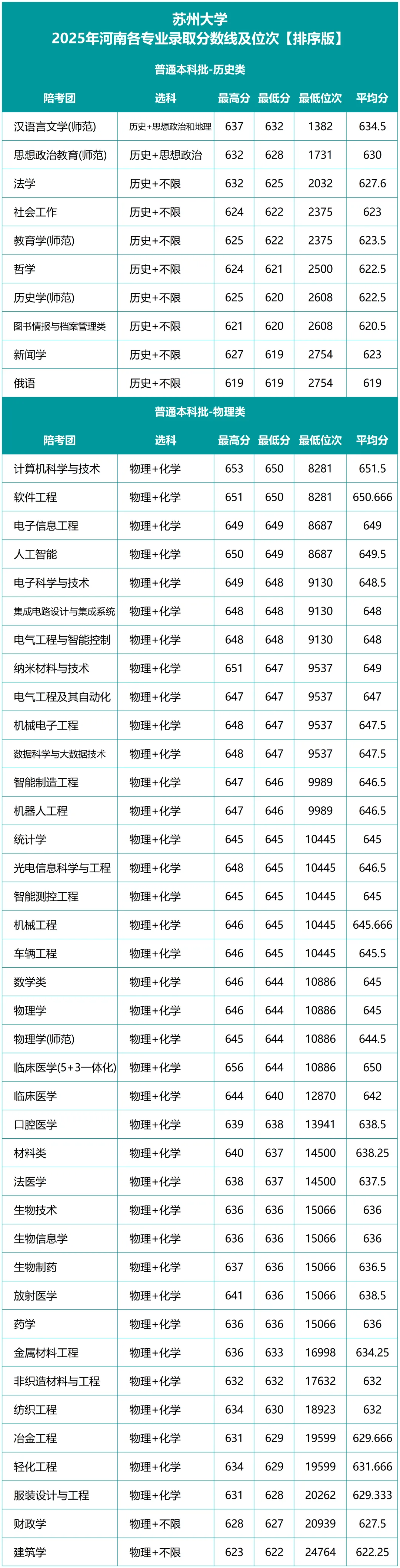 苏州大学2025年河南各专业录取分数线及位次
