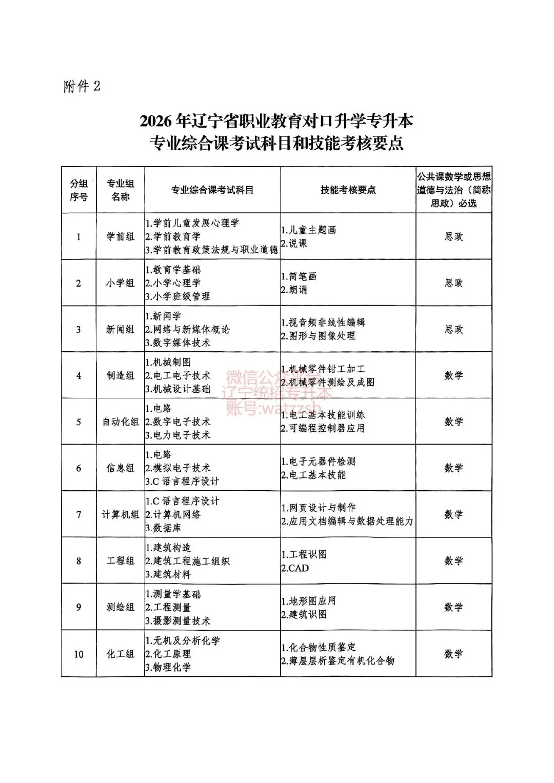 关于公布2026年职业教育对口升学专升本专业综合课考试科目和技能考核要点的通知