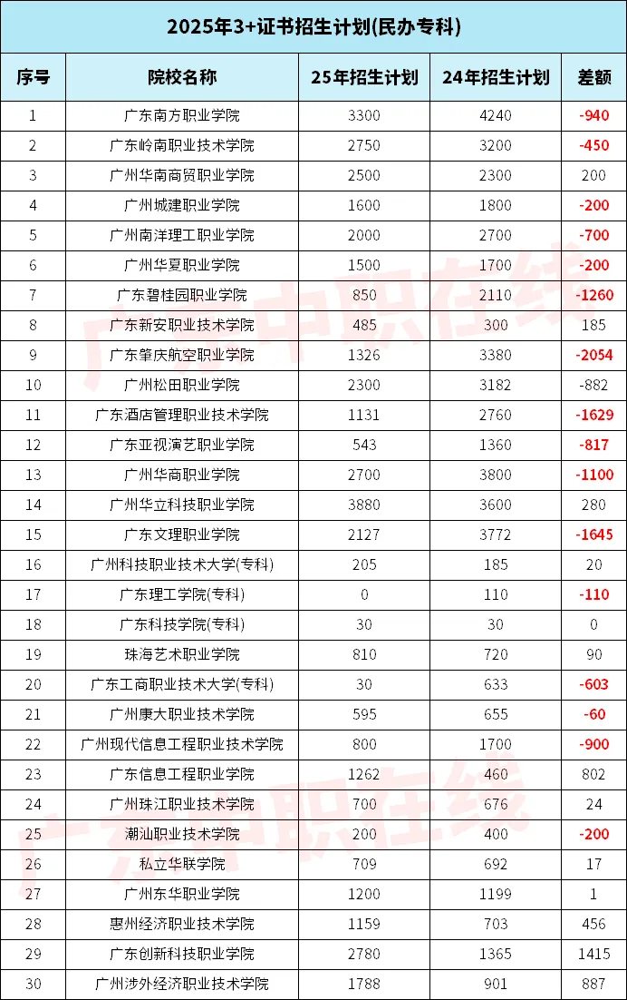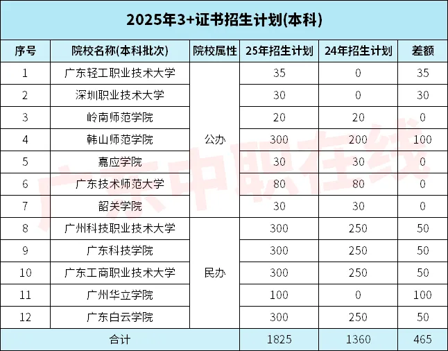25年3+证书专科批次招生计划里,有2所院校退出了专科批次的招录!分别为:韩山师范学院、广东理工学院