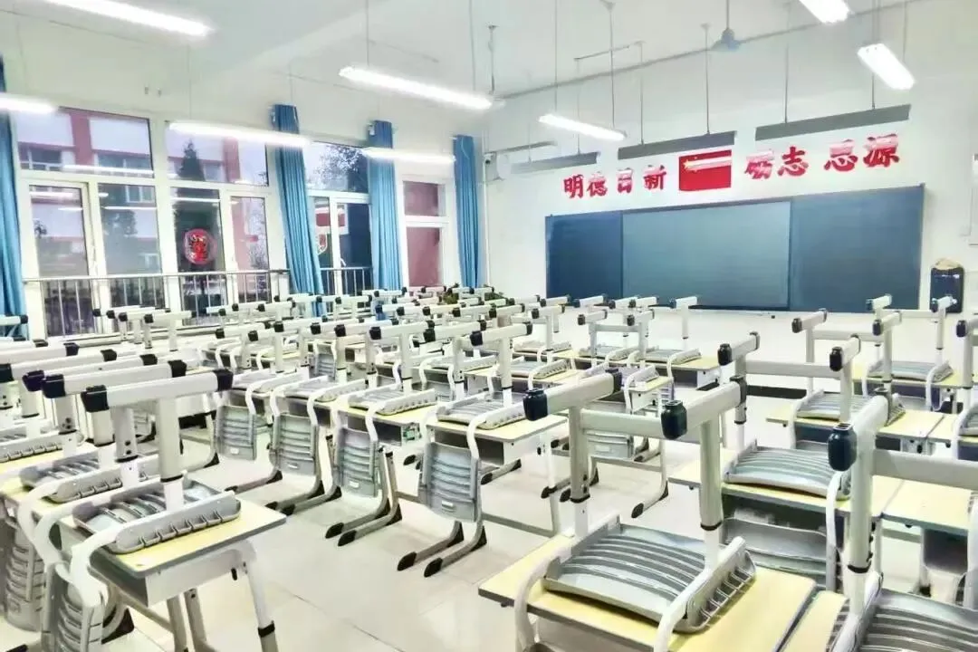 夕阳西下,余晖洒在无人的教室里。桌椅整齐排列,黑板上擦拭干净,空气中似乎还弥漫着淡淡的笔墨香和专注的气息。