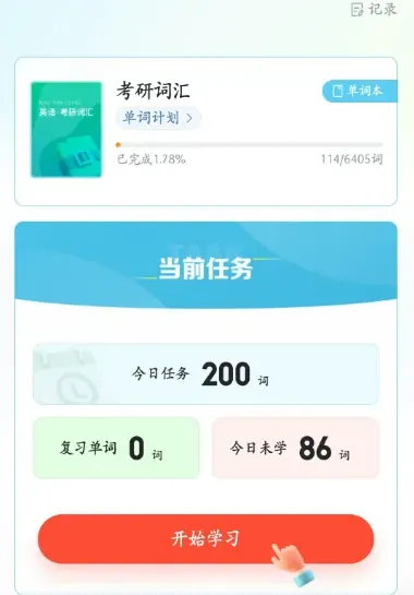 把英语考研词汇根据自己的学习进度自动生成学习计划,寒假持续积累,返校词汇量蹭蹭涨。