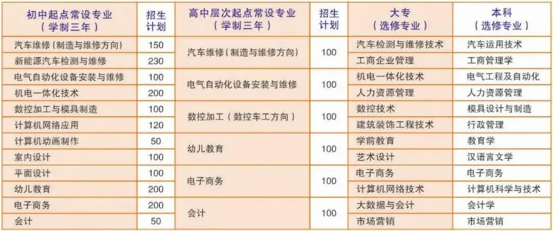 高中层次起点常设专业介绍