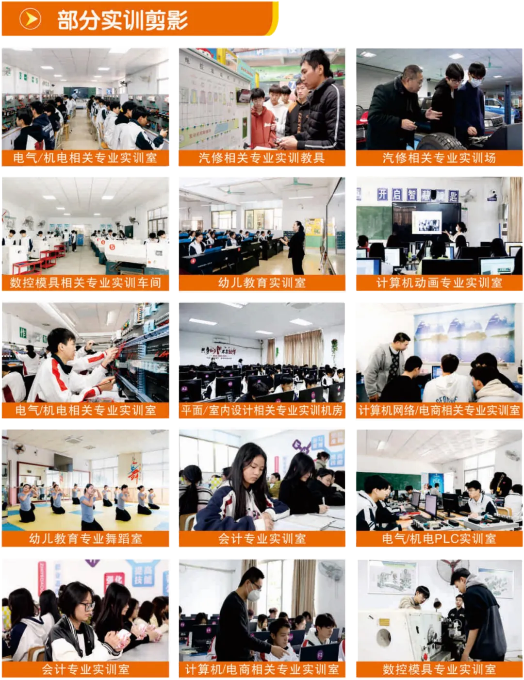 主要面向广汽集团的广本、广丰、东风日产、广汽传祺等汽车知名企业从事汽车装配、汽车检测与维修、以及汽车配件公司、售后服务机构等工作。