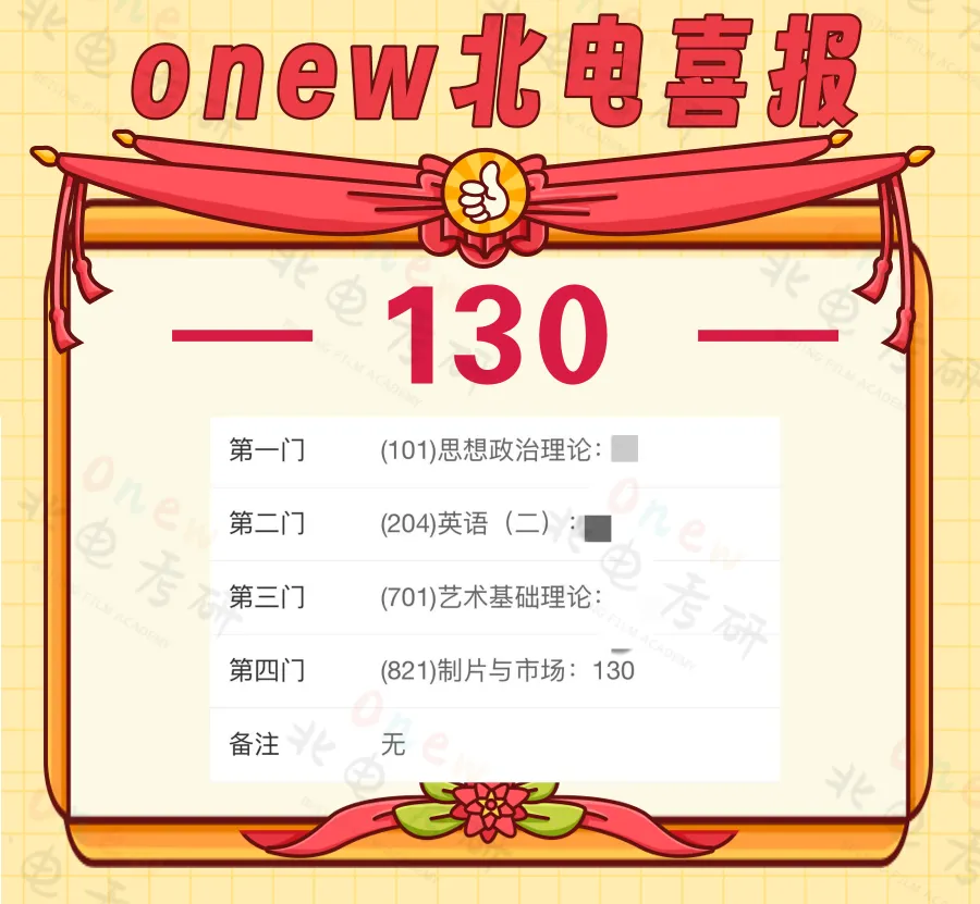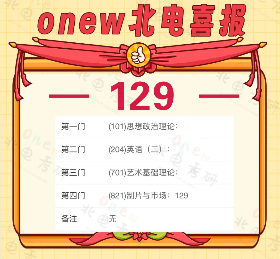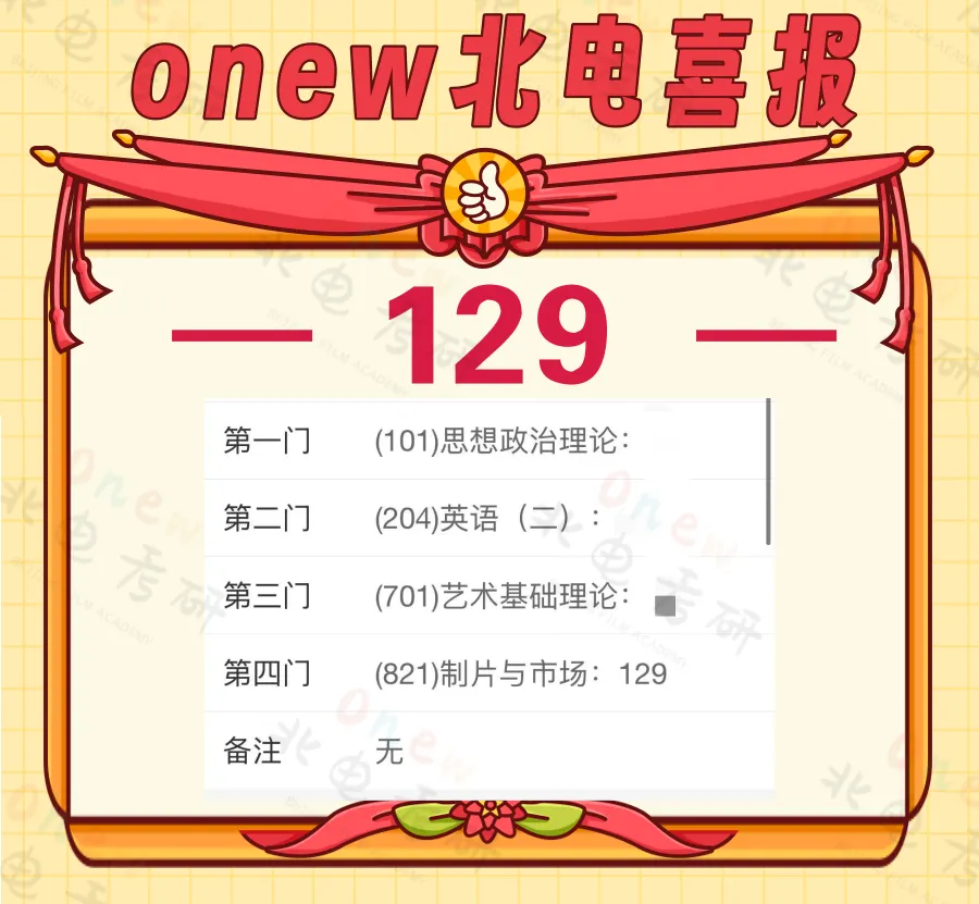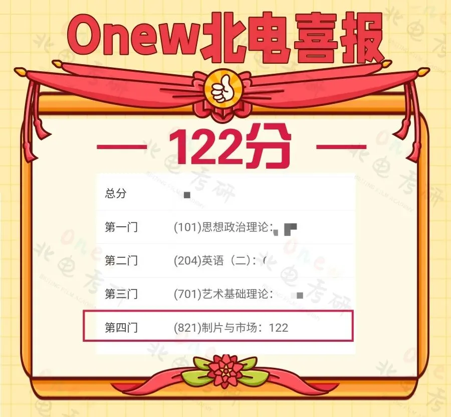 2025届onew管理学院电影制片管理和电影市场营销专业学员成绩:初试总分最高 395(目前所知最高分),并且我们在制片和营销两个方向都有两位同学拿到了最高分395分。专业二最高分 130(目前所知专业二单科最高分)。
